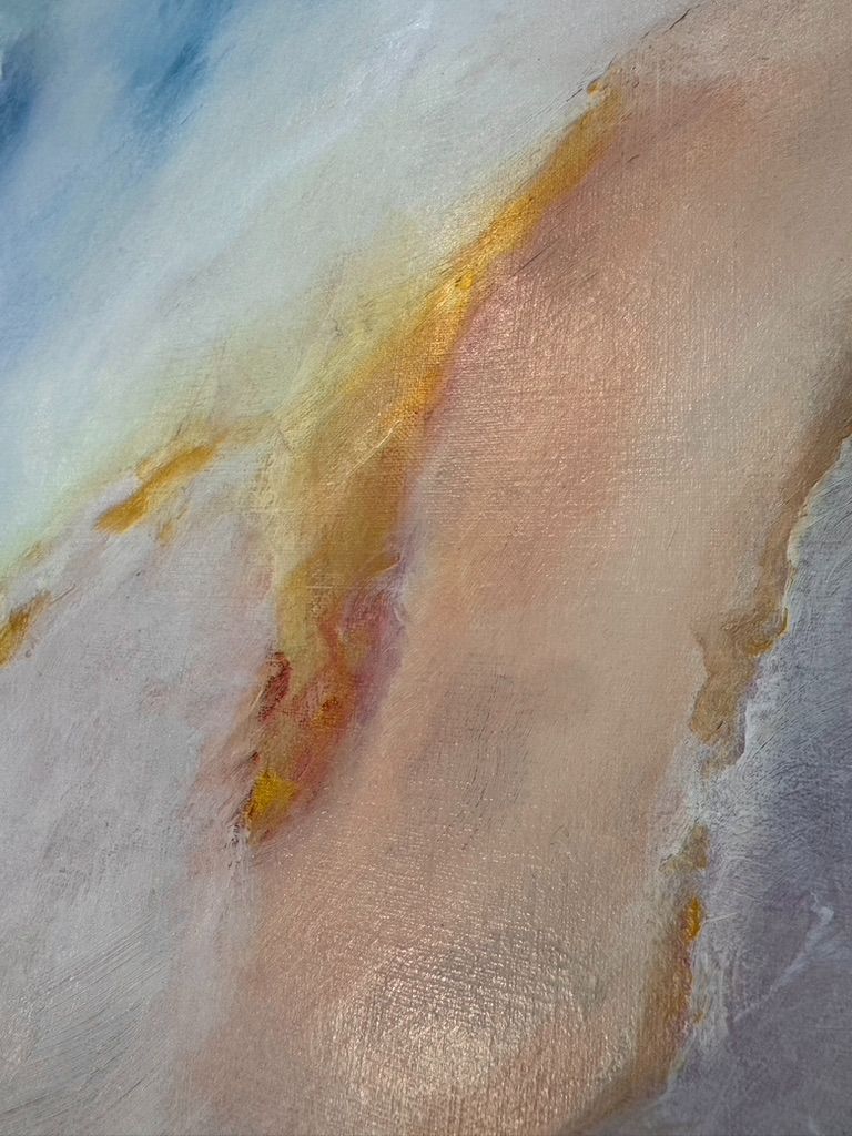 As I was guided to make this painting luminous and dreamy, the forms started to take shape to tell a story. While the flowing movement created invites you in to explore more. This Light Energy Art serves as a visual meditation for your sacred space, holding frequencies of love.